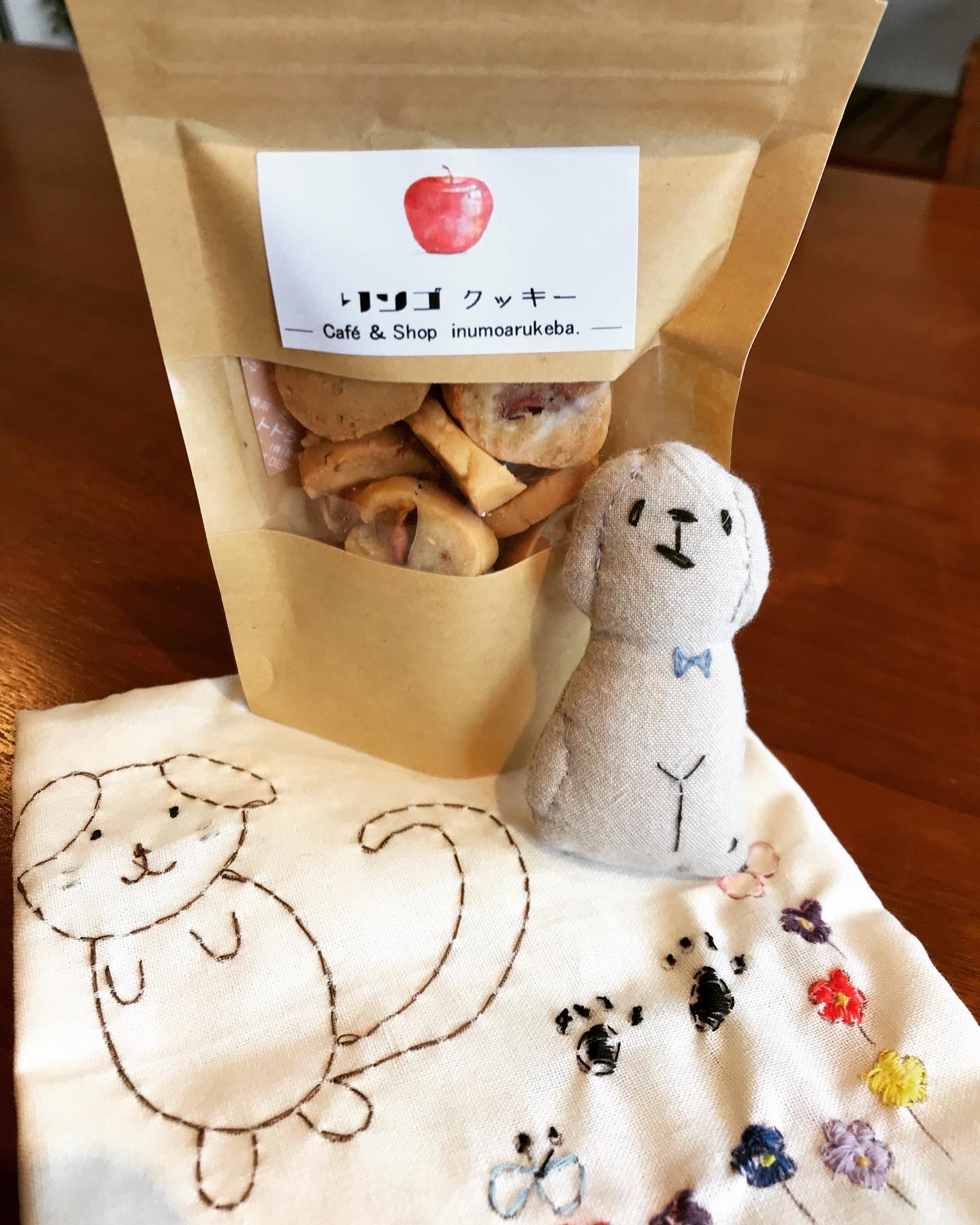 犬も歩けば…。オリジナルわんちゃん用りんごクッキーです。素材も厳選、国産のりんご(時期により品種は異なります)と米粉を使い丁寧にお店で焼き上げております。