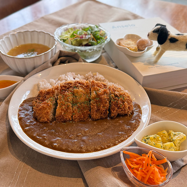 ボリュームたっぷりの大きなとんかつが載ったスパイシーなカレーランチです。